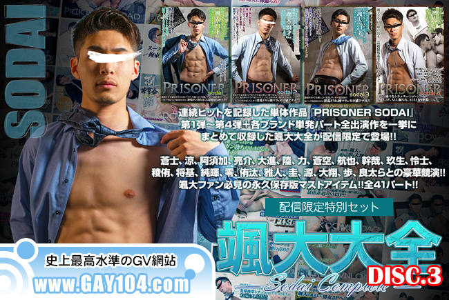 連続ヒットを記録した単体作品『PRISONER SODAI』第1弾∼第4弾+各ブランド単発パート全出演作を一挙にまとめて収録した颯大大全が配信限定で登場!!